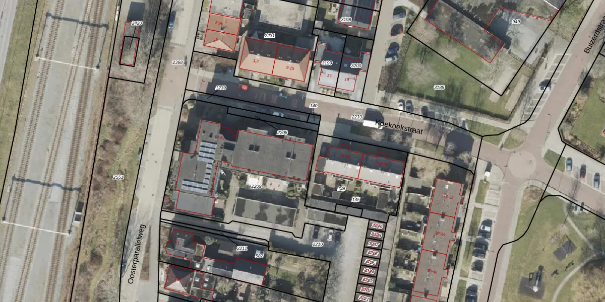 Het perceel waarop Koekoekstraat 16 staat heeft een oppervlakte van 1740 m². Dit is een zeer groot perceel. De perceeloppervlakte wordt geregistreerd door het Kadaster. Gedetailleerde informatie over de maten van dit perceel kunt u vinden in het rapport Kadastrale kaart met maatvoering van Koekoekstraat 16.
