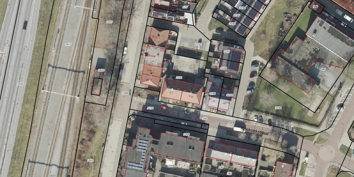 Het perceel waarop Koekoekstraat 7 staat heeft een oppervlakte van 1240 m². Dit is een zeer groot perceel. De perceeloppervlakte wordt geregistreerd door het Kadaster. Gedetailleerde informatie over de maten van dit perceel kunt u vinden in het rapport Kadastrale kaart met maatvoering van Koekoekstraat 7.