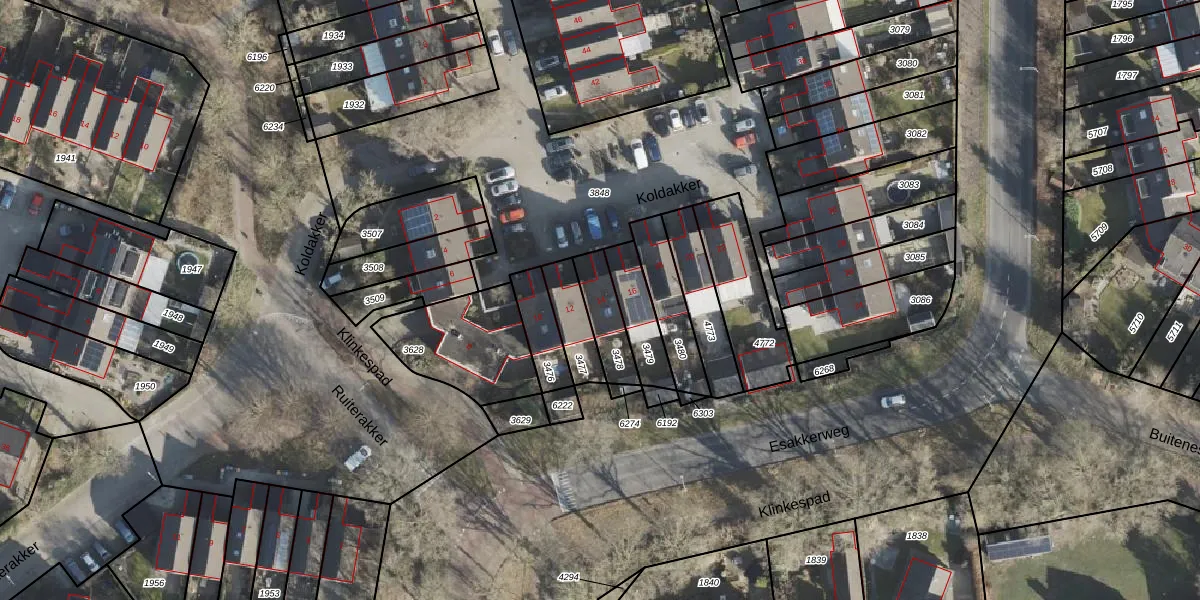 Gebruik de zoekbalk of klik op een perceel voor informatie over de adressen binnen dit perceel.