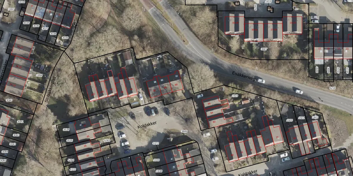 Het perceel waarop Koldakker 88 staat heeft een oppervlakte van 3504 m². Dit is een zeer groot perceel. De perceeloppervlakte wordt geregistreerd door het Kadaster. Gedetailleerde informatie over de maten van dit perceel kunt u vinden in het rapport Kadastrale kaart met maatvoering van Koldakker 88.