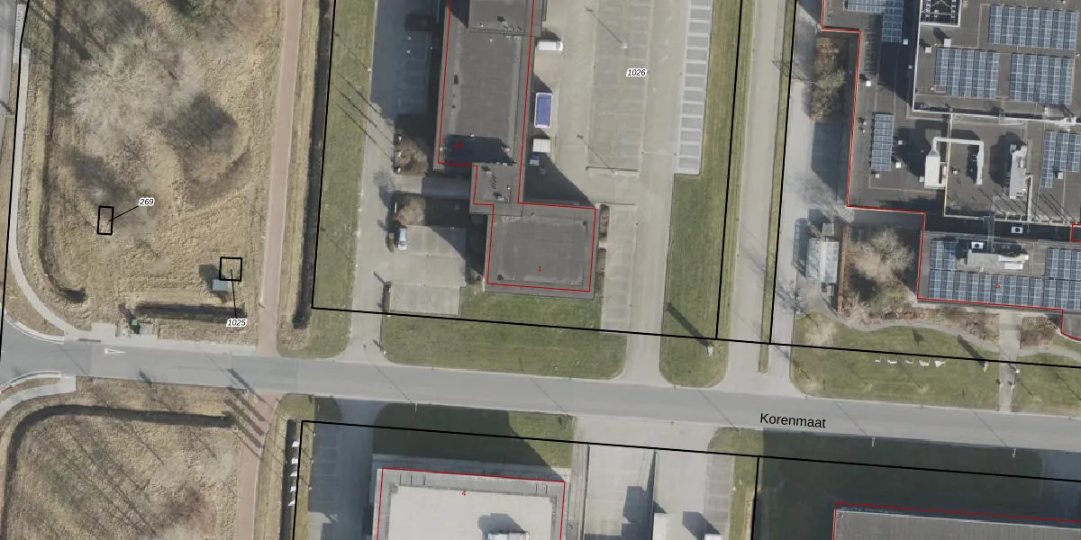Het perceel waarop Korenmaat 1 staat heeft een oppervlakte van 6750 m². Dit is een zeer groot perceel. De perceeloppervlakte wordt geregistreerd door het Kadaster. Gedetailleerde informatie over de maten van dit perceel kunt u vinden in het rapport Kadastrale kaart met maatvoering van Korenmaat 1.