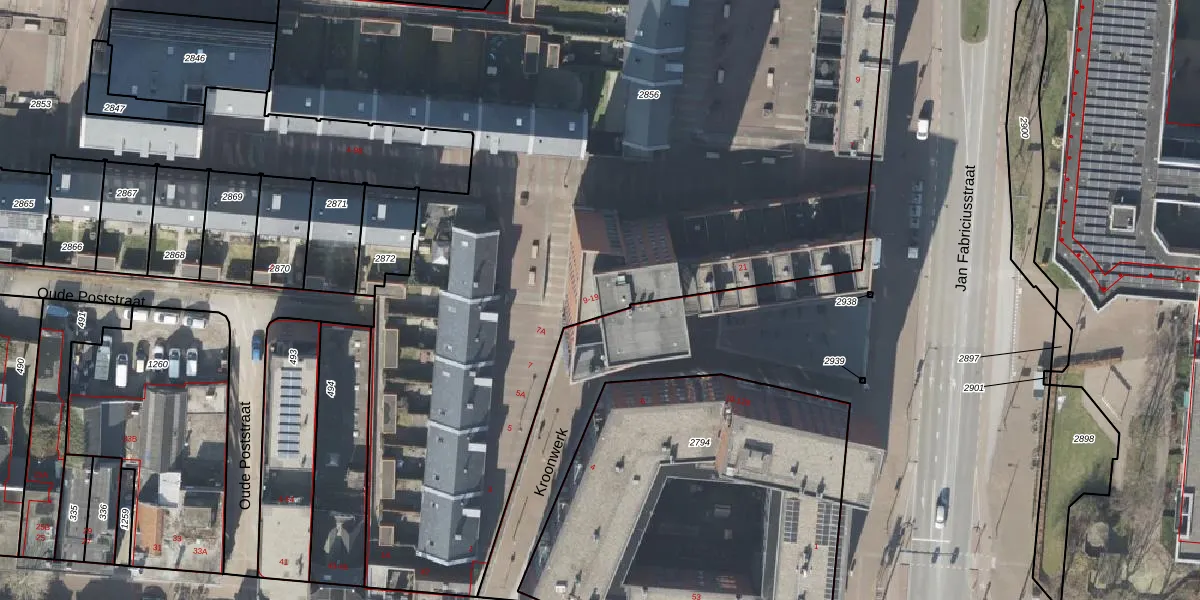 Het perceel waarop Kroonwerk 11 staat heeft een oppervlakte van 7764 m². Dit is een zeer groot perceel. De perceeloppervlakte wordt geregistreerd door het Kadaster. Gedetailleerde informatie over de maten van dit perceel kunt u vinden in het rapport Kadastrale kaart met maatvoering van Kroonwerk 11.