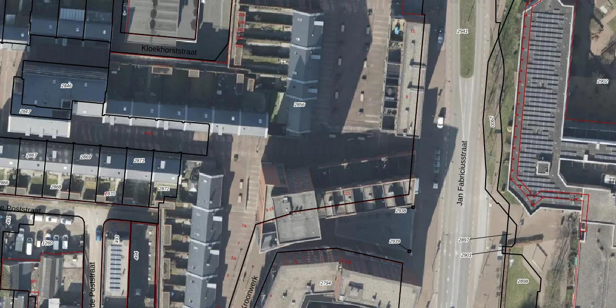 Het perceel waarop Kroonwerk 15 staat heeft een oppervlakte van 7764 m². Dit is een zeer groot perceel. De perceeloppervlakte wordt geregistreerd door het Kadaster. Gedetailleerde informatie over de maten van dit perceel kunt u vinden in het rapport Kadastrale kaart met maatvoering van Kroonwerk 15.