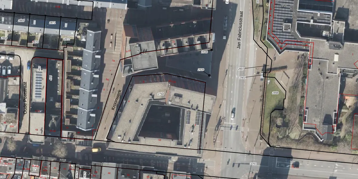 Het perceel waarop Kroonwerk 60 staat heeft een oppervlakte van 1825 m². Dit is een zeer groot perceel. De perceeloppervlakte wordt geregistreerd door het Kadaster. Gedetailleerde informatie over de maten van dit perceel kunt u vinden in het rapport Kadastrale kaart met maatvoering van Kroonwerk 60.