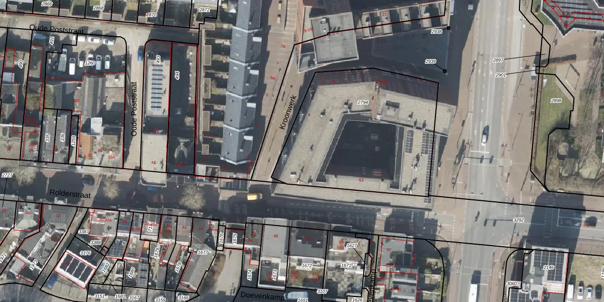 Het perceel waarop Kroonwerk 70 staat heeft een oppervlakte van 1825 m². Dit is een zeer groot perceel. De perceeloppervlakte wordt geregistreerd door het Kadaster. Gedetailleerde informatie over de maten van dit perceel kunt u vinden in het rapport Kadastrale kaart met maatvoering van Kroonwerk 70.