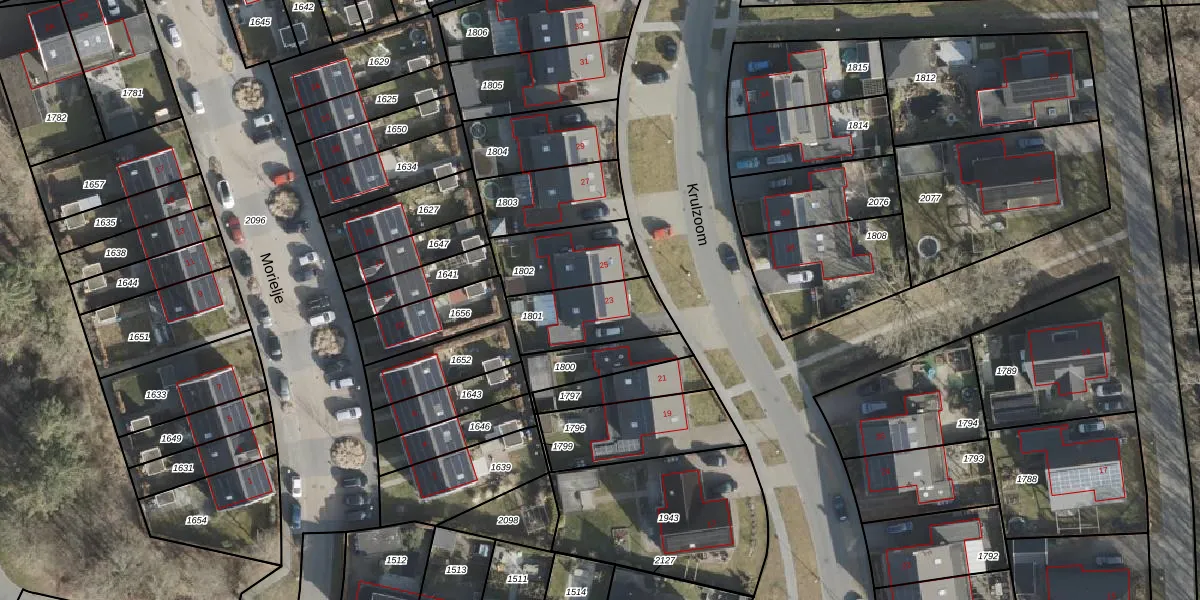 Gebruik de zoekbalk of klik op een perceel voor informatie over de adressen binnen dit perceel.