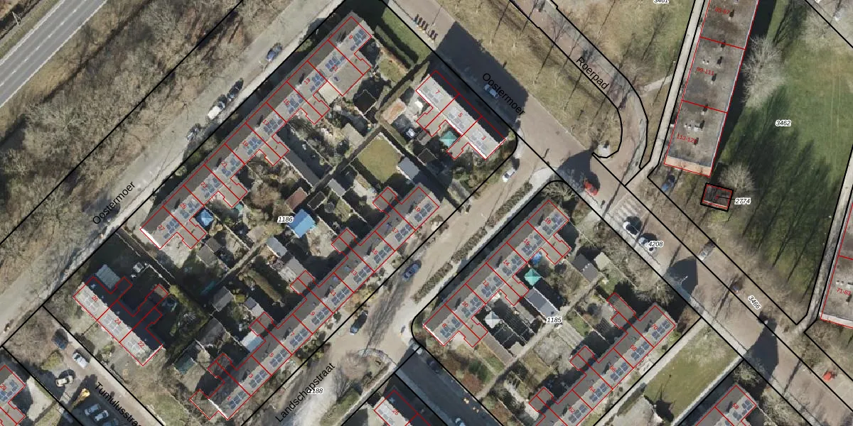 Het perceel waarop Landschapstraat 19 staat heeft een oppervlakte van 5668 m². Dit is een zeer groot perceel. De perceeloppervlakte wordt geregistreerd door het Kadaster. Gedetailleerde informatie over de maten van dit perceel kunt u vinden in het rapport Kadastrale kaart met maatvoering van Landschapstraat 19.