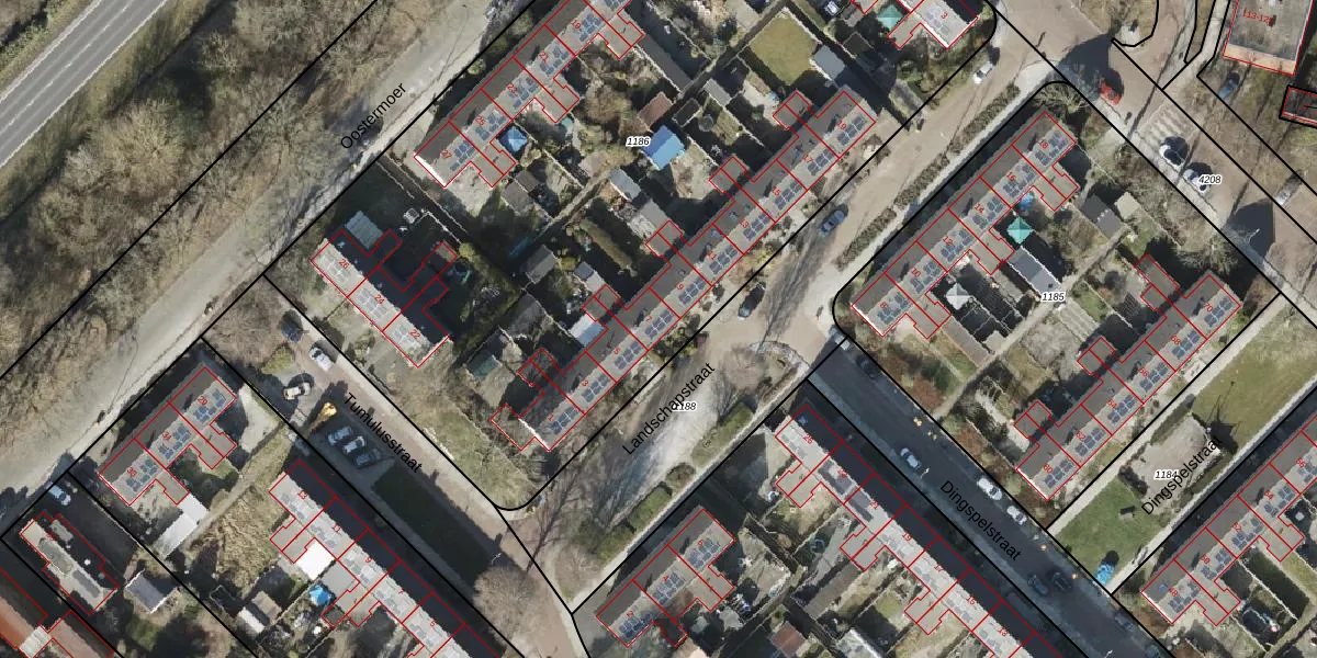 Het perceel waarop Landschapstraat 7 staat heeft een oppervlakte van 5668 m². Dit is een zeer groot perceel. De perceeloppervlakte wordt geregistreerd door het Kadaster. Gedetailleerde informatie over de maten van dit perceel kunt u vinden in het rapport Kadastrale kaart met maatvoering van Landschapstraat 7.