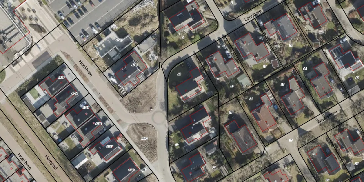 Het perceel waarop Langbree 21 staat heeft een oppervlakte van 619 m². Dit is een groot perceel. De perceeloppervlakte wordt geregistreerd door het Kadaster. Gedetailleerde informatie over de maten van dit perceel kunt u vinden in het rapport Kadastrale kaart met maatvoering van Langbree 21.