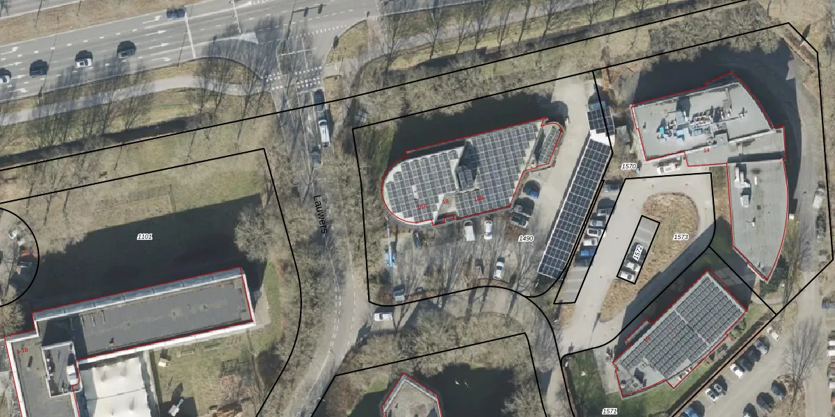 Het perceel waarop Lauwers 18-A staat heeft een oppervlakte van 2572 m². Dit is een zeer groot perceel. De perceeloppervlakte wordt geregistreerd door het Kadaster. Gedetailleerde informatie over de maten van dit perceel kunt u vinden in het rapport Kadastrale kaart met maatvoering van Lauwers 18-A.