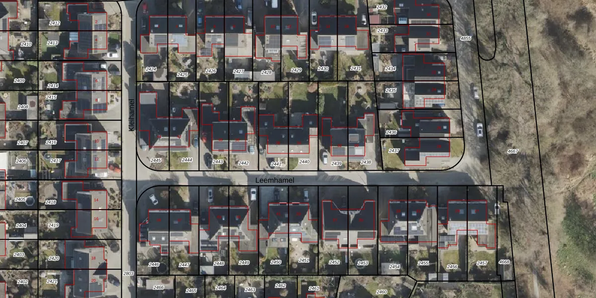 Gebruik de zoekbalk of klik op een perceel voor informatie over de adressen binnen dit perceel.