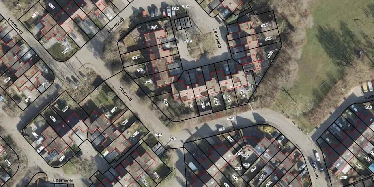 Het perceel waarop Leemveld 10 staat heeft een oppervlakte van 386 m². Dit is een groot perceel. De perceeloppervlakte wordt geregistreerd door het Kadaster. Gedetailleerde informatie over de maten van dit perceel kunt u vinden in het rapport Kadastrale kaart met maatvoering van Leemveld 10.