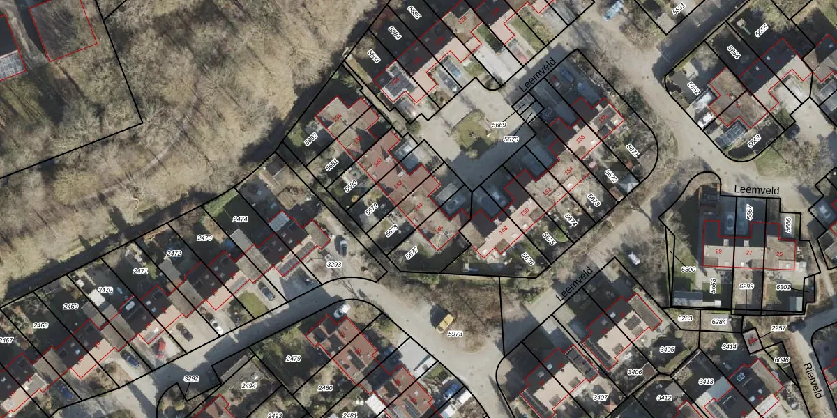 Gebruik de zoekbalk of klik op een perceel voor informatie over de adressen binnen dit perceel.