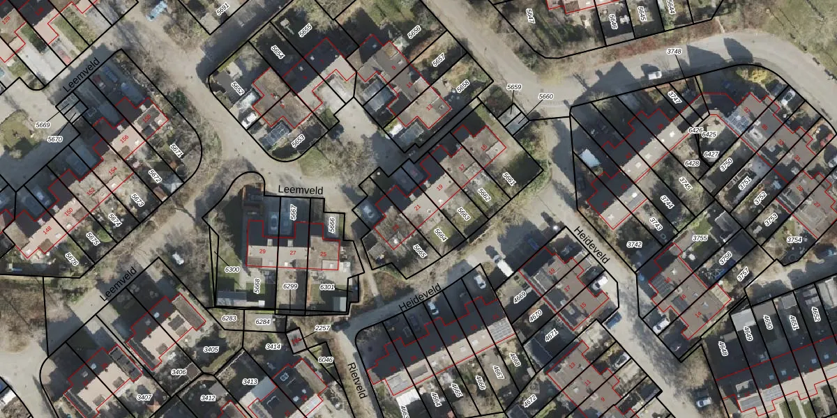 Het perceel waarop Leemveld 21 staat heeft een oppervlakte van 178 m². Dit is een middelgroot perceel. De perceeloppervlakte wordt geregistreerd door het Kadaster. Gedetailleerde informatie over de maten van dit perceel kunt u vinden in het rapport Kadastrale kaart met maatvoering van Leemveld 21.
