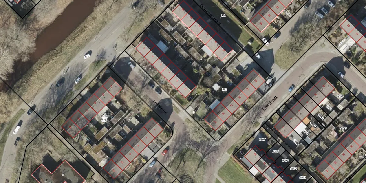 Het perceel waarop Lekstraat 11 staat heeft een oppervlakte van 3261 m². Dit is een zeer groot perceel. De perceeloppervlakte wordt geregistreerd door het Kadaster. Gedetailleerde informatie over de maten van dit perceel kunt u vinden in het rapport Kadastrale kaart met maatvoering van Lekstraat 11.