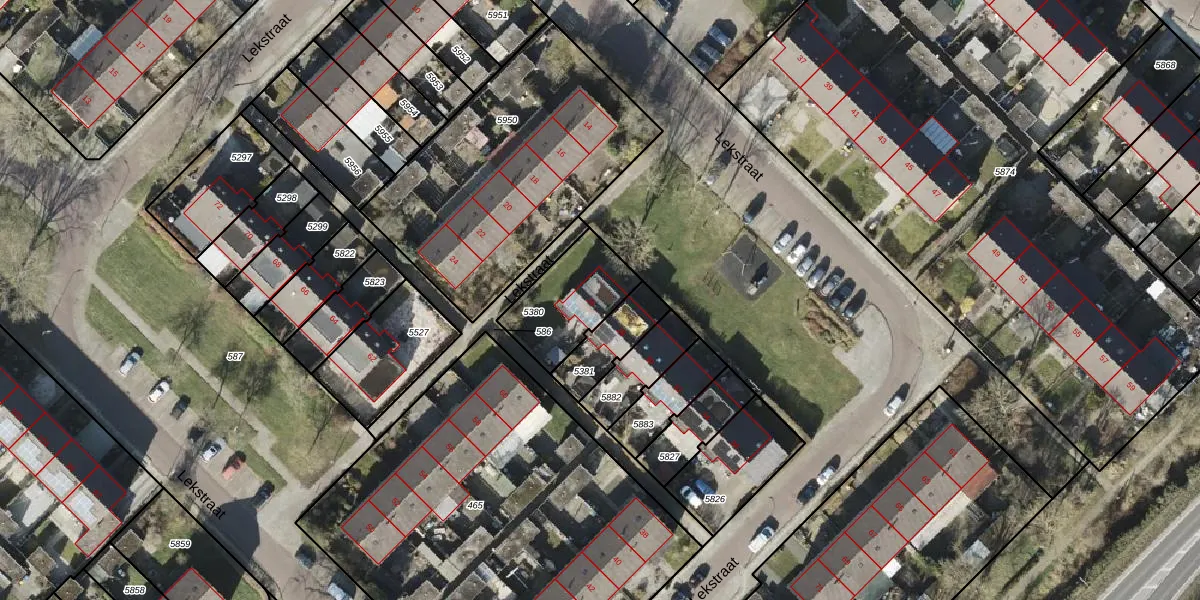 Lekstraat 26 is gelegen op kadastraal perceel ASN00X5380. Deze kadastrale aanduiding is uniek en wordt gebruikt door het Kadaster om eigendomsrechten en andere zakelijke rechten vast te leggen. Het perceel maakt onderdeel uit van de kadastrale gemeente Assen.