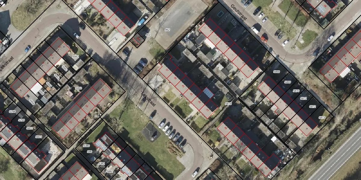 Het perceel waarop Lekstraat 41 staat heeft een oppervlakte van 4090 m². Dit is een zeer groot perceel. De perceeloppervlakte wordt geregistreerd door het Kadaster. Gedetailleerde informatie over de maten van dit perceel kunt u vinden in het rapport Kadastrale kaart met maatvoering van Lekstraat 41.