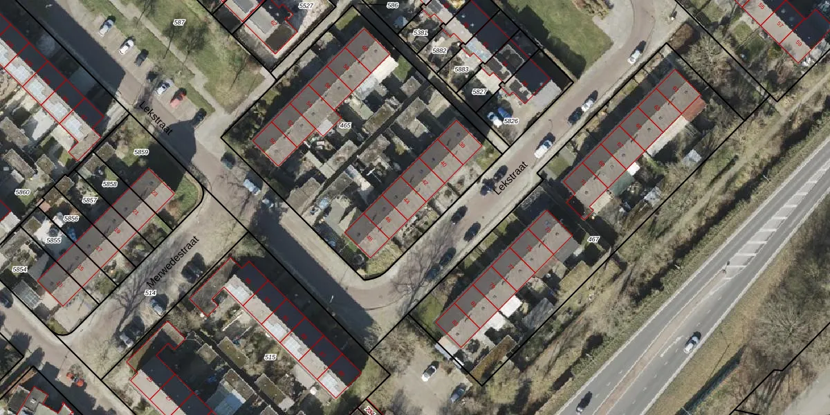 Het perceel waarop Lekstraat 44 staat heeft een oppervlakte van 2291 m². Dit is een zeer groot perceel. De perceeloppervlakte wordt geregistreerd door het Kadaster. Gedetailleerde informatie over de maten van dit perceel kunt u vinden in het rapport Kadastrale kaart met maatvoering van Lekstraat 44.