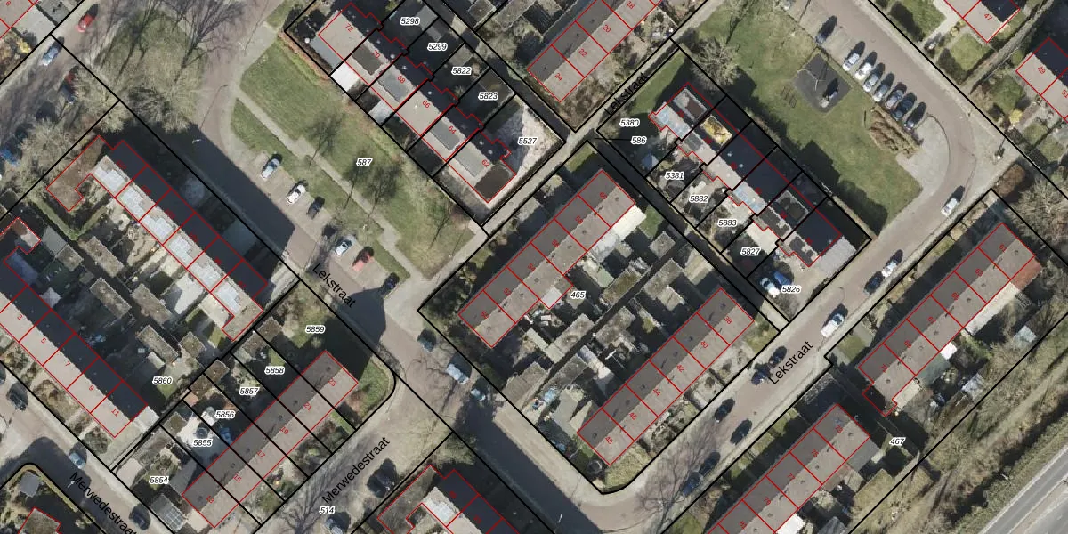 Het perceel waarop Lekstraat 54 staat heeft een oppervlakte van 2291 m². Dit is een zeer groot perceel. De perceeloppervlakte wordt geregistreerd door het Kadaster. Gedetailleerde informatie over de maten van dit perceel kunt u vinden in het rapport Kadastrale kaart met maatvoering van Lekstraat 54.