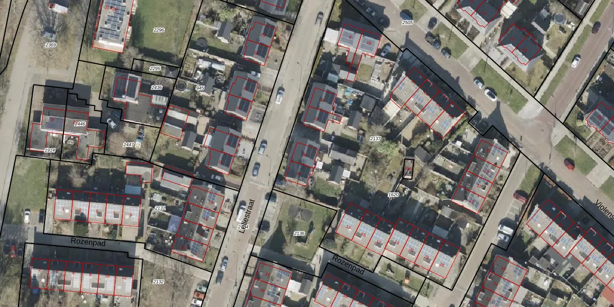 Het perceel waarop Leliestraat 20 staat heeft een oppervlakte van 4281 m². Dit is een zeer groot perceel. De perceeloppervlakte wordt geregistreerd door het Kadaster. Gedetailleerde informatie over de maten van dit perceel kunt u vinden in het rapport Kadastrale kaart met maatvoering van Leliestraat 20.
