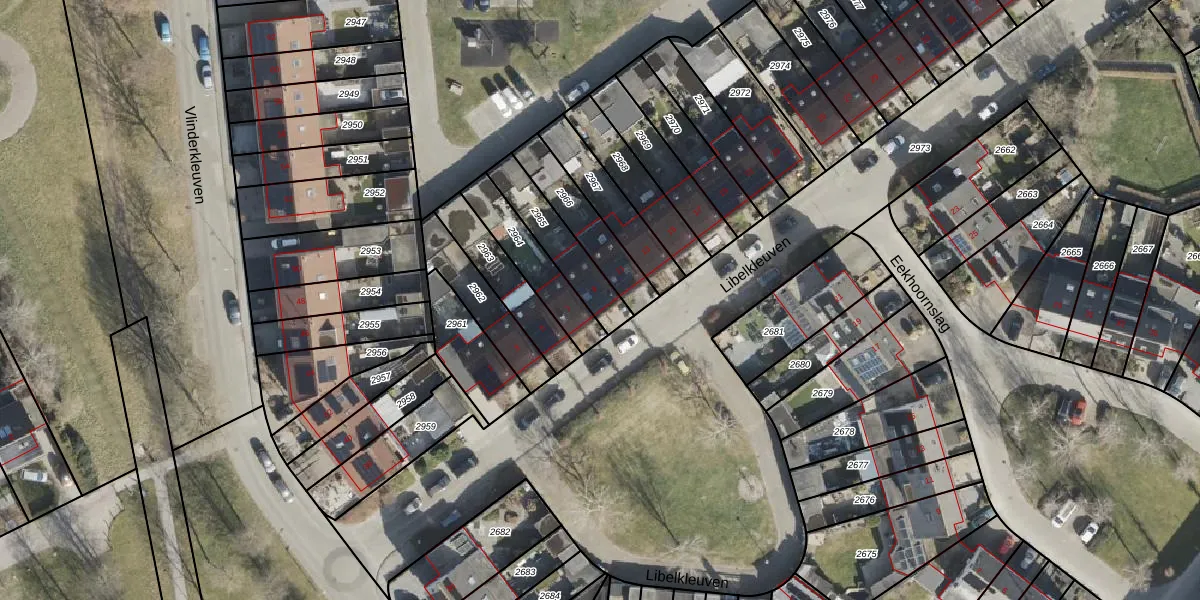 Het perceel waarop Libelkleuven 9 staat heeft een oppervlakte van 184 m². Dit is een middelgroot perceel. De perceeloppervlakte wordt geregistreerd door het Kadaster. Gedetailleerde informatie over de maten van dit perceel kunt u vinden in het rapport Kadastrale kaart met maatvoering van Libelkleuven 9.