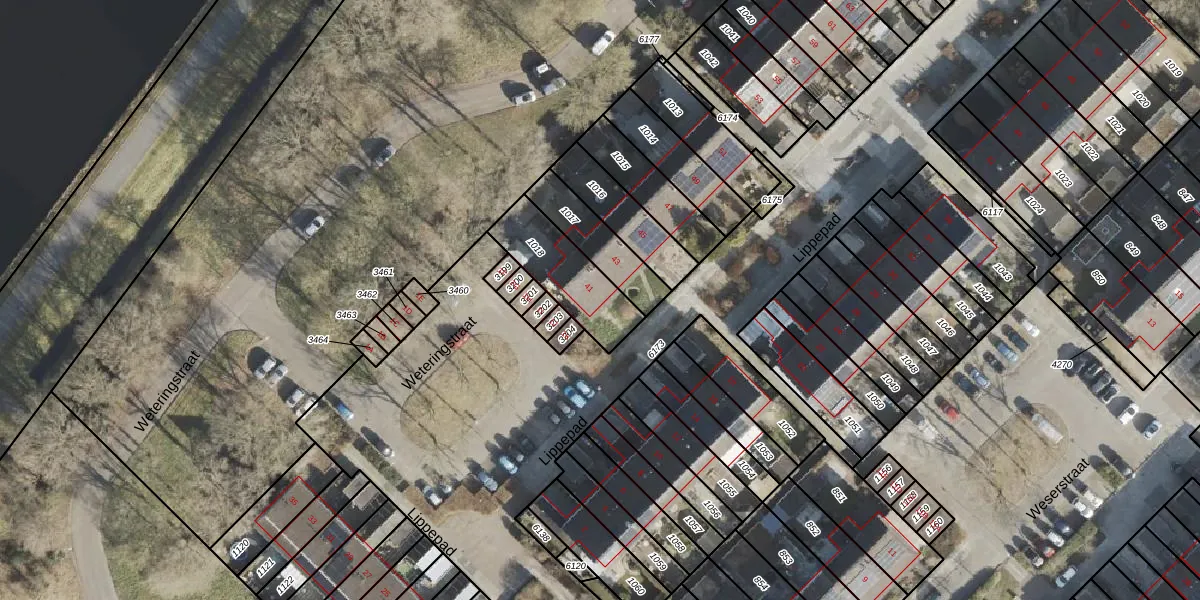 Gebruik de zoekbalk of klik op een perceel voor informatie over de adressen binnen dit perceel.