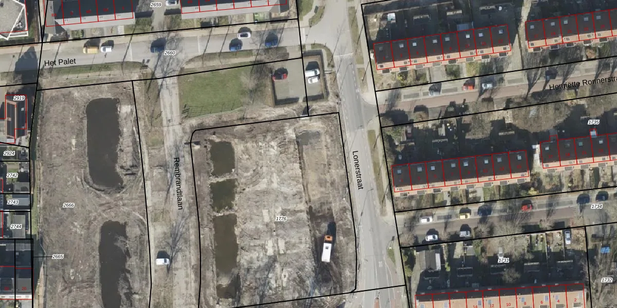 Het perceel waarop Lonerstraat 11 staat heeft een oppervlakte van 2955 m². Dit is een zeer groot perceel. De perceeloppervlakte wordt geregistreerd door het Kadaster. Gedetailleerde informatie over de maten van dit perceel kunt u vinden in het rapport Kadastrale kaart met maatvoering van Lonerstraat 11.