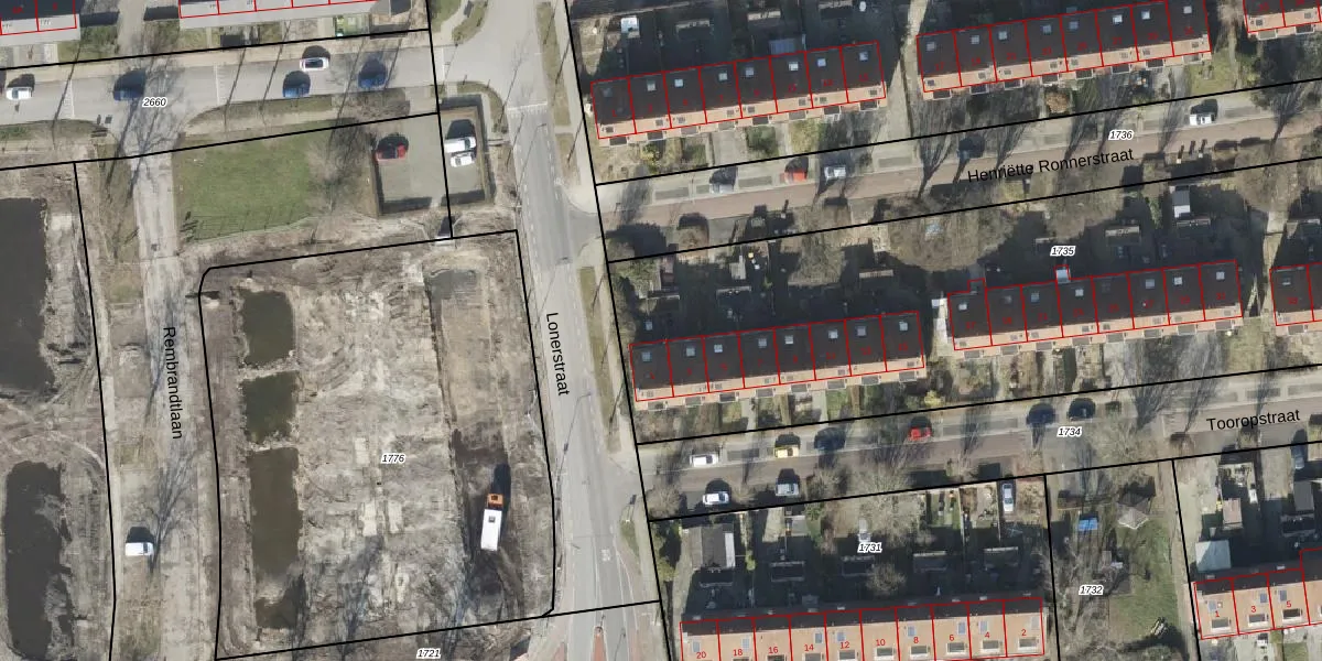 Het perceel waarop Lonerstraat 2-C staat heeft een oppervlakte van 4379 m². Dit is een zeer groot perceel. De perceeloppervlakte wordt geregistreerd door het Kadaster. Gedetailleerde informatie over de maten van dit perceel kunt u vinden in het rapport Kadastrale kaart met maatvoering van Lonerstraat 2-C.