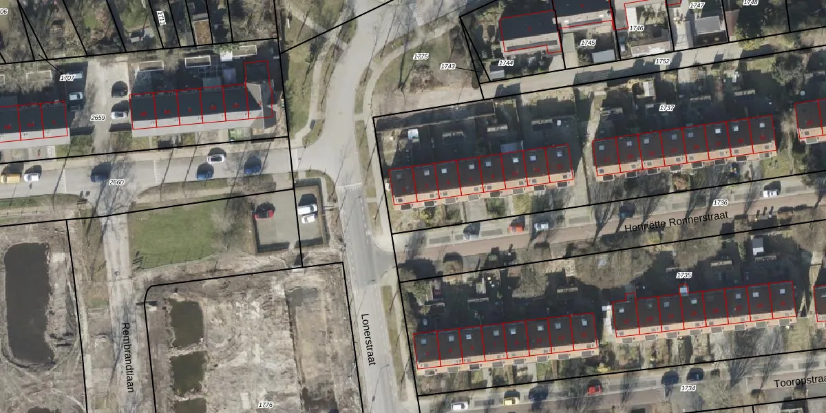 Het perceel waarop Lonerstraat 2-E staat heeft een oppervlakte van 4440 m². Dit is een zeer groot perceel. De perceeloppervlakte wordt geregistreerd door het Kadaster. Gedetailleerde informatie over de maten van dit perceel kunt u vinden in het rapport Kadastrale kaart met maatvoering van Lonerstraat 2-E.