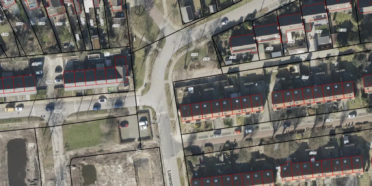 Het perceel waarop Lonerstraat 2-H staat heeft een oppervlakte van 4440 m². Dit is een zeer groot perceel. De perceeloppervlakte wordt geregistreerd door het Kadaster. Gedetailleerde informatie over de maten van dit perceel kunt u vinden in het rapport Kadastrale kaart met maatvoering van Lonerstraat 2-H.