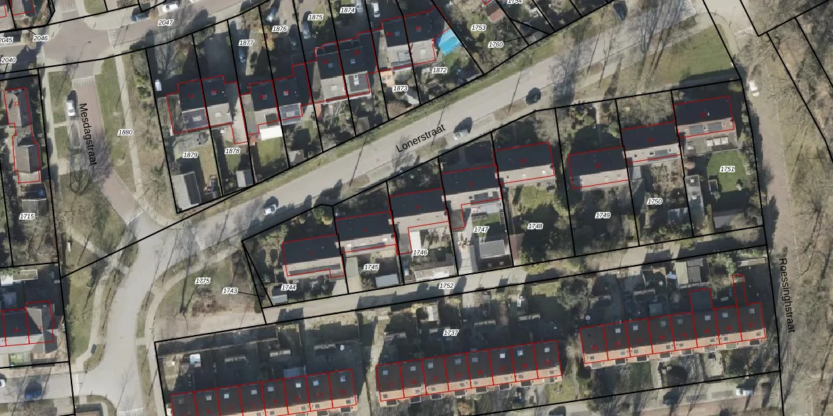 Gebruik de zoekbalk of klik op een perceel voor informatie over de adressen binnen dit perceel.