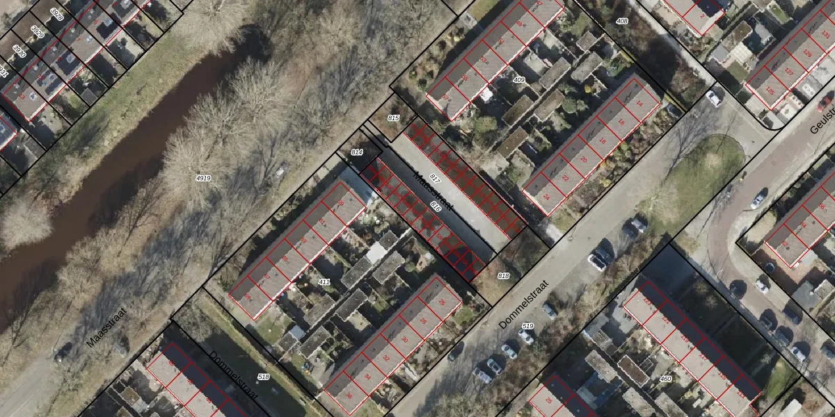 Het perceel waarop Maasstraat 59-F staat heeft een oppervlakte van 383 m². Dit is een groot perceel. De perceeloppervlakte wordt geregistreerd door het Kadaster. Gedetailleerde informatie over de maten van dit perceel kunt u vinden in het rapport Kadastrale kaart met maatvoering van Maasstraat 59-F.