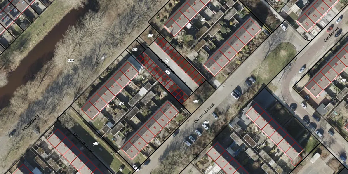 Het perceel waarop Maasstraat 59-J staat heeft een oppervlakte van 383 m². Dit is een groot perceel. De perceeloppervlakte wordt geregistreerd door het Kadaster. Gedetailleerde informatie over de maten van dit perceel kunt u vinden in het rapport Kadastrale kaart met maatvoering van Maasstraat 59-J.