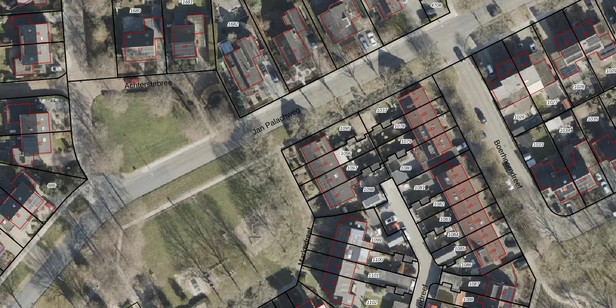 Gebruik de zoekbalk of klik op een perceel voor informatie over de adressen binnen dit perceel.