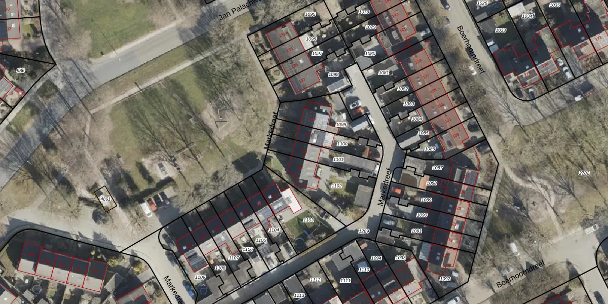 Gebruik de zoekbalk of klik op een perceel voor informatie over de adressen binnen dit perceel.