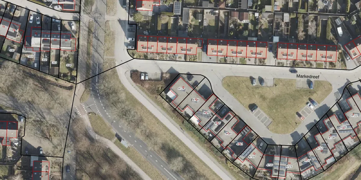 Gebruik de zoekbalk of klik op een perceel voor informatie over de adressen binnen dit perceel.