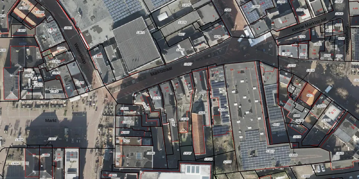 Het perceel waarop Marktstraat 17 staat heeft een oppervlakte van 364 m². Dit is een groot perceel. De perceeloppervlakte wordt geregistreerd door het Kadaster. Gedetailleerde informatie over de maten van dit perceel kunt u vinden in het rapport Kadastrale kaart met maatvoering van Marktstraat 17.