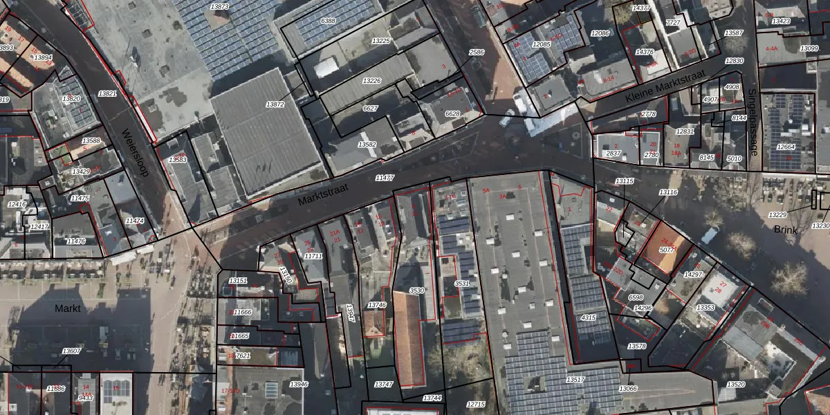 Het perceel waarop Marktstraat 9 staat heeft een oppervlakte van 520 m². Dit is een groot perceel. De perceeloppervlakte wordt geregistreerd door het Kadaster. Gedetailleerde informatie over de maten van dit perceel kunt u vinden in het rapport Kadastrale kaart met maatvoering van Marktstraat 9.
