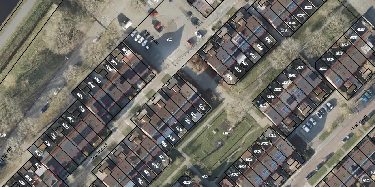 Gebruik de zoekbalk of klik op een perceel voor informatie over de adressen binnen dit perceel.