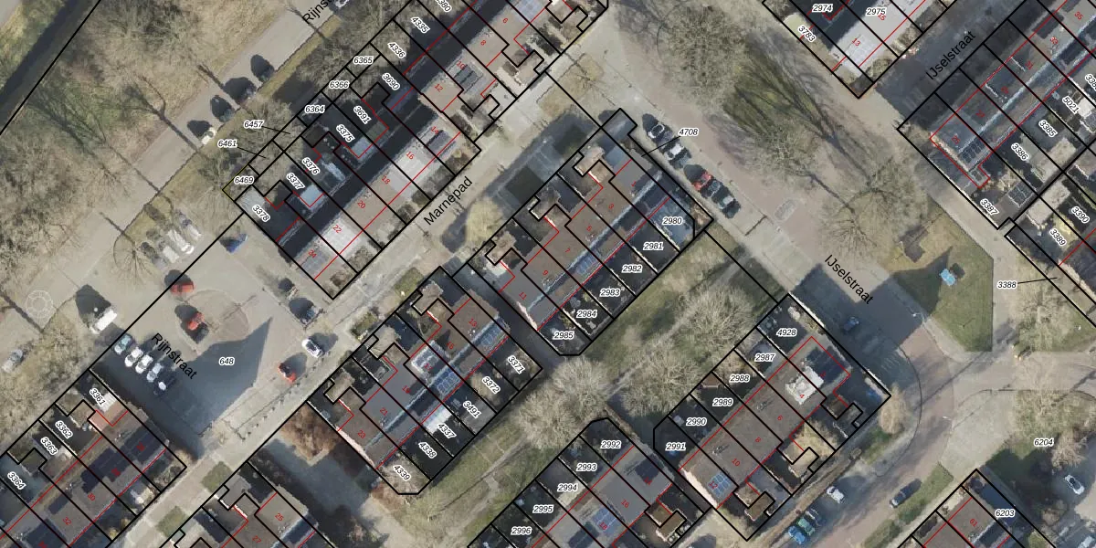 Gebruik de zoekbalk of klik op een perceel voor informatie over de adressen binnen dit perceel.
