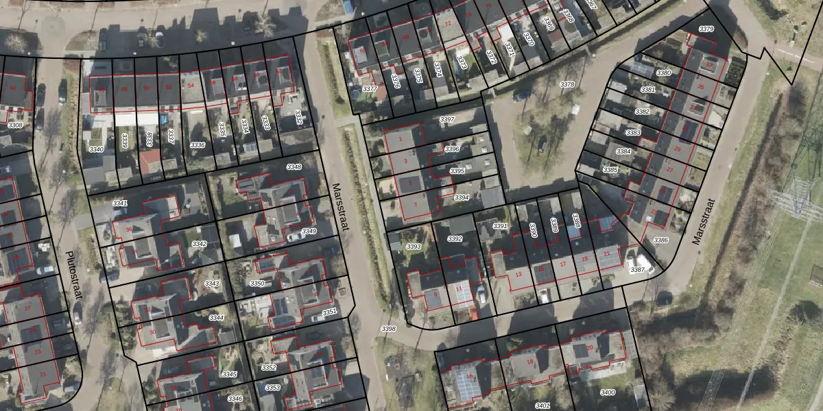 Gebruik de zoekbalk of klik op een perceel voor informatie over de adressen binnen dit perceel.