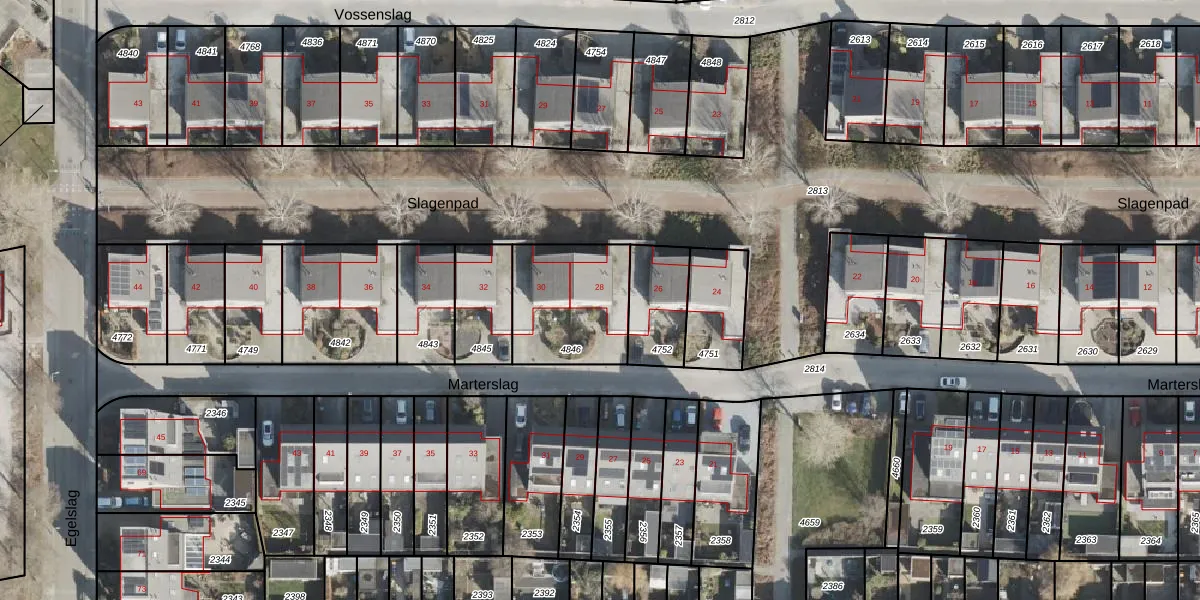 Het perceel waarop Marterslag 28 staat heeft een oppervlakte van 389 m². Dit is een groot perceel. De perceeloppervlakte wordt geregistreerd door het Kadaster. Gedetailleerde informatie over de maten van dit perceel kunt u vinden in het rapport Kadastrale kaart met maatvoering van Marterslag 28.