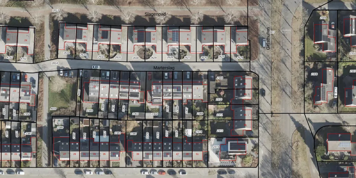Gebruik de zoekbalk of klik op een perceel voor informatie over de adressen binnen dit perceel.