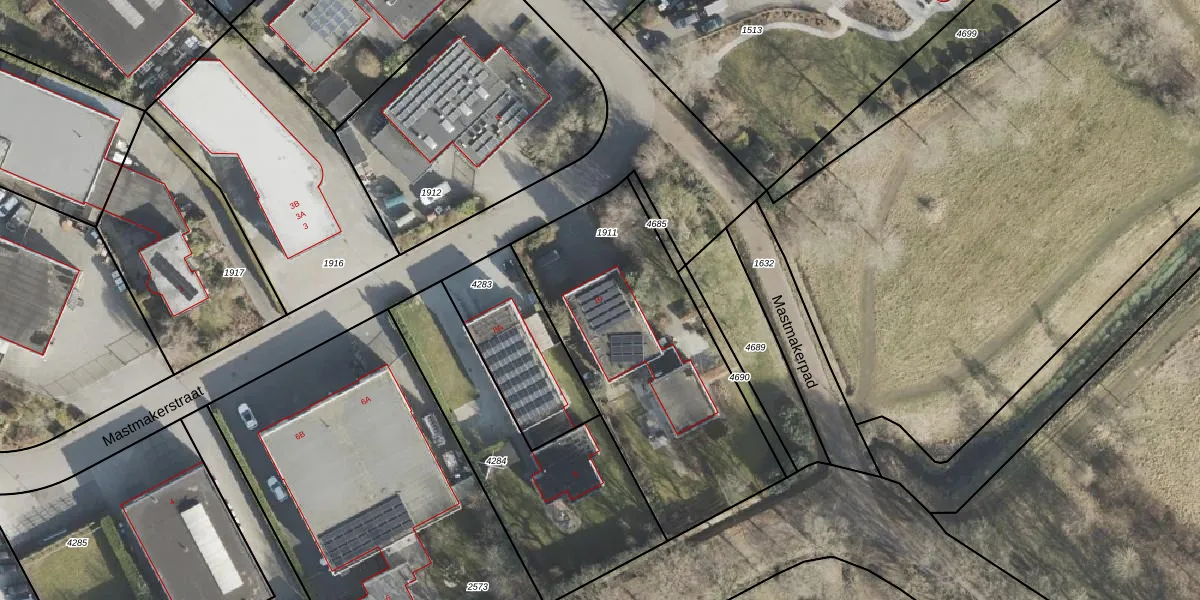 Het perceel waarop Mastmakerstraat 10 staat heeft een oppervlakte van 1261 m². Dit is een zeer groot perceel. De perceeloppervlakte wordt geregistreerd door het Kadaster. Gedetailleerde informatie over de maten van dit perceel kunt u vinden in het rapport Kadastrale kaart met maatvoering van Mastmakerstraat 10.