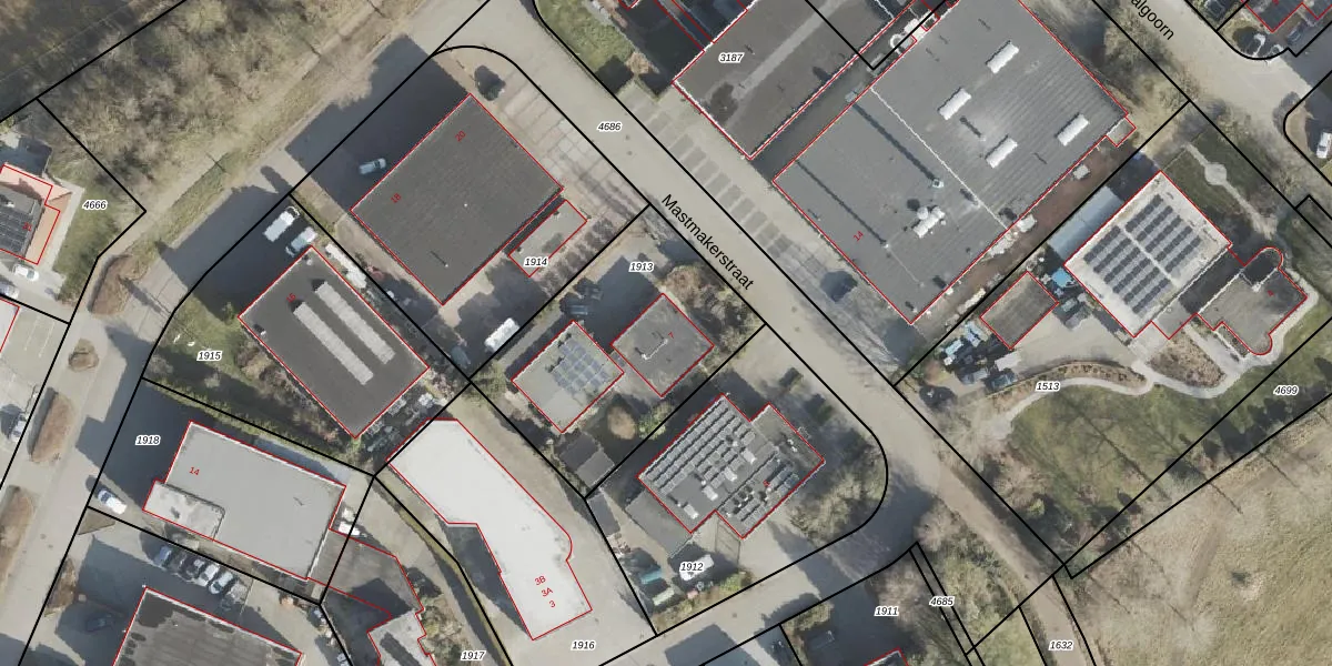 Het perceel waarop Mastmakerstraat 7 staat heeft een oppervlakte van 950 m². Dit is een groot perceel. De perceeloppervlakte wordt geregistreerd door het Kadaster. Gedetailleerde informatie over de maten van dit perceel kunt u vinden in het rapport Kadastrale kaart met maatvoering van Mastmakerstraat 7.