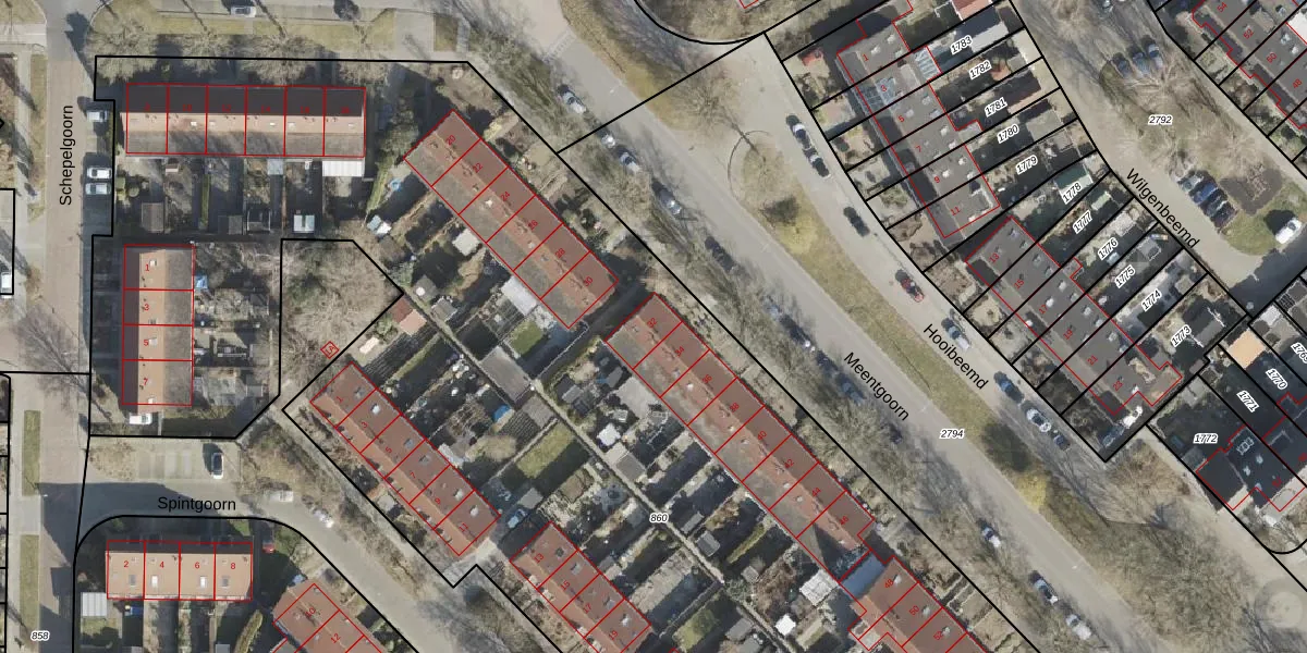 Het perceel waarop Meentgoorn 32 staat heeft een oppervlakte van 1,0 ha. Dit is een zeer groot perceel. De perceeloppervlakte wordt geregistreerd door het Kadaster. Gedetailleerde informatie over de maten van dit perceel kunt u vinden in het rapport Kadastrale kaart met maatvoering van Meentgoorn 32.