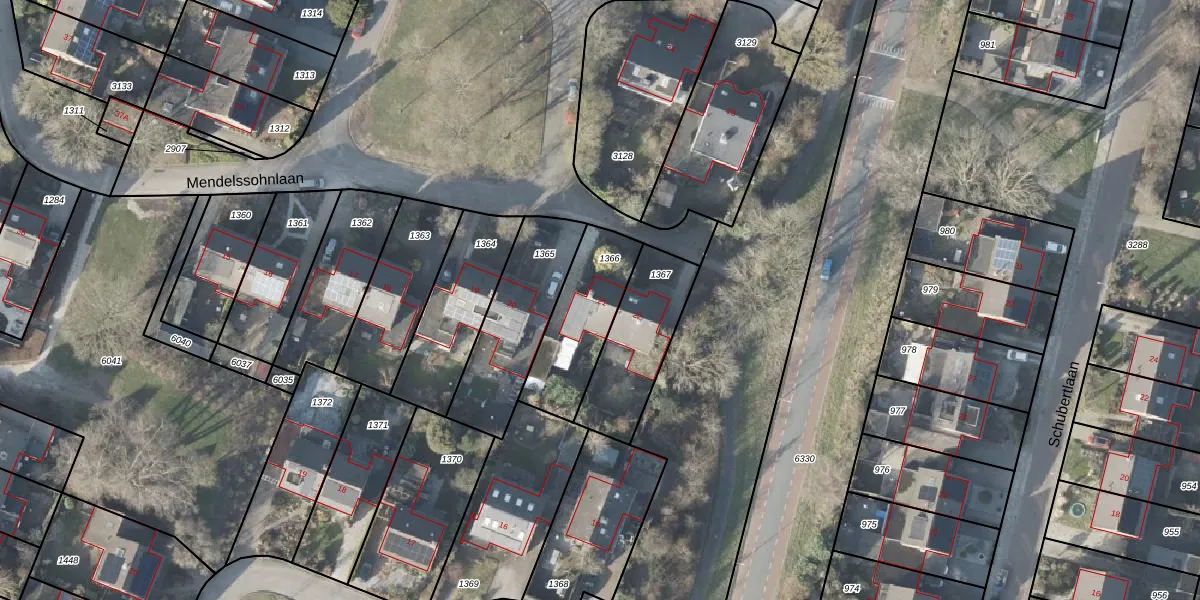 Het perceel waarop Mendelssohnlaan 21 staat heeft een oppervlakte van 319 m². Dit is een groot perceel. De perceeloppervlakte wordt geregistreerd door het Kadaster. Gedetailleerde informatie over de maten van dit perceel kunt u vinden in het rapport Kadastrale kaart met maatvoering van Mendelssohnlaan 21.