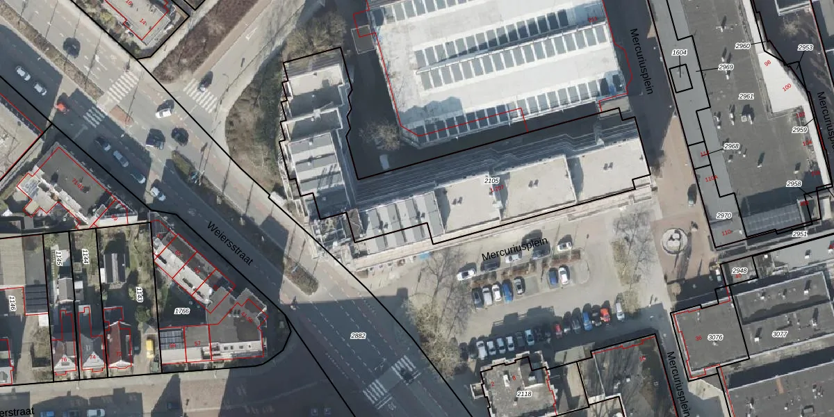 Het perceel waarop Mercuriusplein 103 staat heeft een oppervlakte van 1870 m². Dit is een zeer groot perceel. De perceeloppervlakte wordt geregistreerd door het Kadaster. Gedetailleerde informatie over de maten van dit perceel kunt u vinden in het rapport Kadastrale kaart met maatvoering van Mercuriusplein 103.