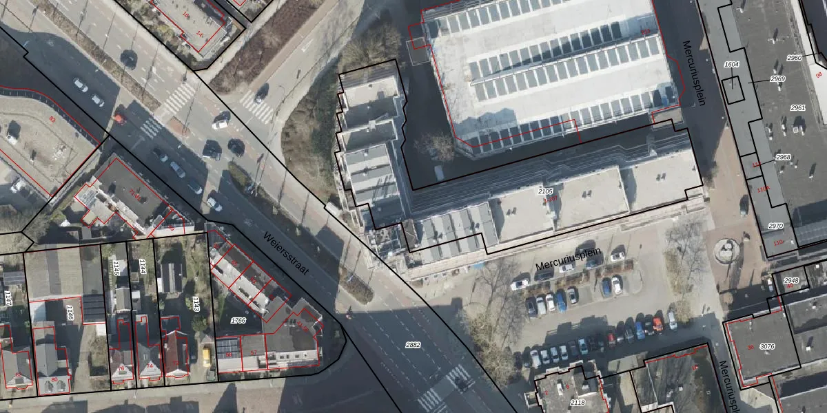 Het perceel waarop Mercuriusplein 185 staat heeft een oppervlakte van 1870 m². Dit is een zeer groot perceel. De perceeloppervlakte wordt geregistreerd door het Kadaster. Gedetailleerde informatie over de maten van dit perceel kunt u vinden in het rapport Kadastrale kaart met maatvoering van Mercuriusplein 185.