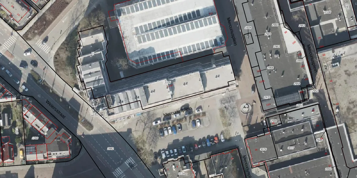 Het perceel waarop Mercuriusplein 41 staat heeft een oppervlakte van 1870 m². Dit is een zeer groot perceel. De perceeloppervlakte wordt geregistreerd door het Kadaster. Gedetailleerde informatie over de maten van dit perceel kunt u vinden in het rapport Kadastrale kaart met maatvoering van Mercuriusplein 41.